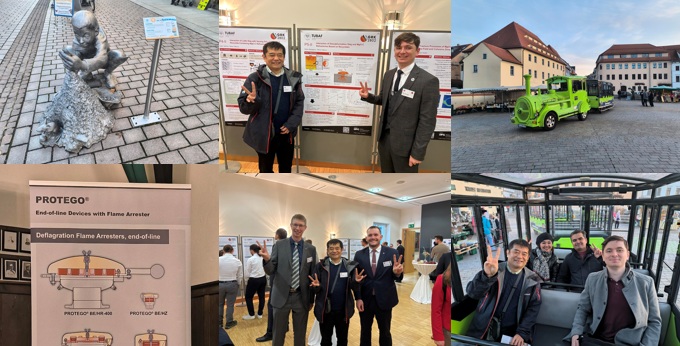 - 今回のフライベルク工科大学への出張は12月だったため、出張前はかなり寒く、雪もあるだろうと予想していました。しかし、この週は終始どの日も日中は15℃程度と、とても過ごしやすい気温で、温かさを感じるほどでした。そのおかげで、3年ぶりのフライベルク滞在を存分に楽しませていただきました。11日の最終日には、PhD学生のエルダーさんに汽車のような形をした天然ガスを燃料とした車(?)で街を案内していただきました。その際、今後熱物性との関連についても調べていきたいというお話を伺うことができました。夕食は、ドイツの工業向け安全装置メーカー「PROTEGO」がスポンサーとなっている、PhD学生対象の懇親会に合流しました。アルコール度数の高いお酒を交わしながら、楽しく歓談させていただきました。若い方々の中に、もうすぐ50歳になる自分が混ざっていいのかなと少し不安もありましたが、非常に楽しい時間を過ごすことができました。ミッションも無事終えましたので、あとはDoor to Doorで一日かけて帰国したいと思います^^;。"Welcome back to Freiberg!!"と温かく迎えてくださったゲルトさん、ルーカスさん、マテウスさん、そしてボルコバ先生のPhD学生の皆さんに心より感謝申し上げます。昨日のフォーラムの写真も含めてHPに掲載させていただきます。(2025.12.12)