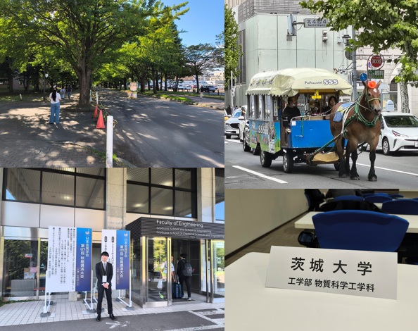 - 日本金属学会2025年秋期大会が北海道大学で開催され、M2の飯島くんが「RxO-B2O3-SiO2融体の熱伝導率評価(R=Li, Na, Ca, Mg)」というタイトルで発表しました。北海道大学は札幌駅から近くて広くてキレイでとても魅力的です^^。昔からあったのか札幌市街を馬車で移動しているのを目撃したのも驚きました。学会ではとても有益なアドバイスを頂きました。10月の東北大でのNMR測定結果が加わるととても面白い結果になるかと思いました^^。飯島くん発表お疲れ様でした。西は学会後、初めて全材協の総会に出席し、人事公募ついて報告させて頂きました。来年秋の金属学会・鉄鋼協会は秋田大学です^^。(2025.9.19)